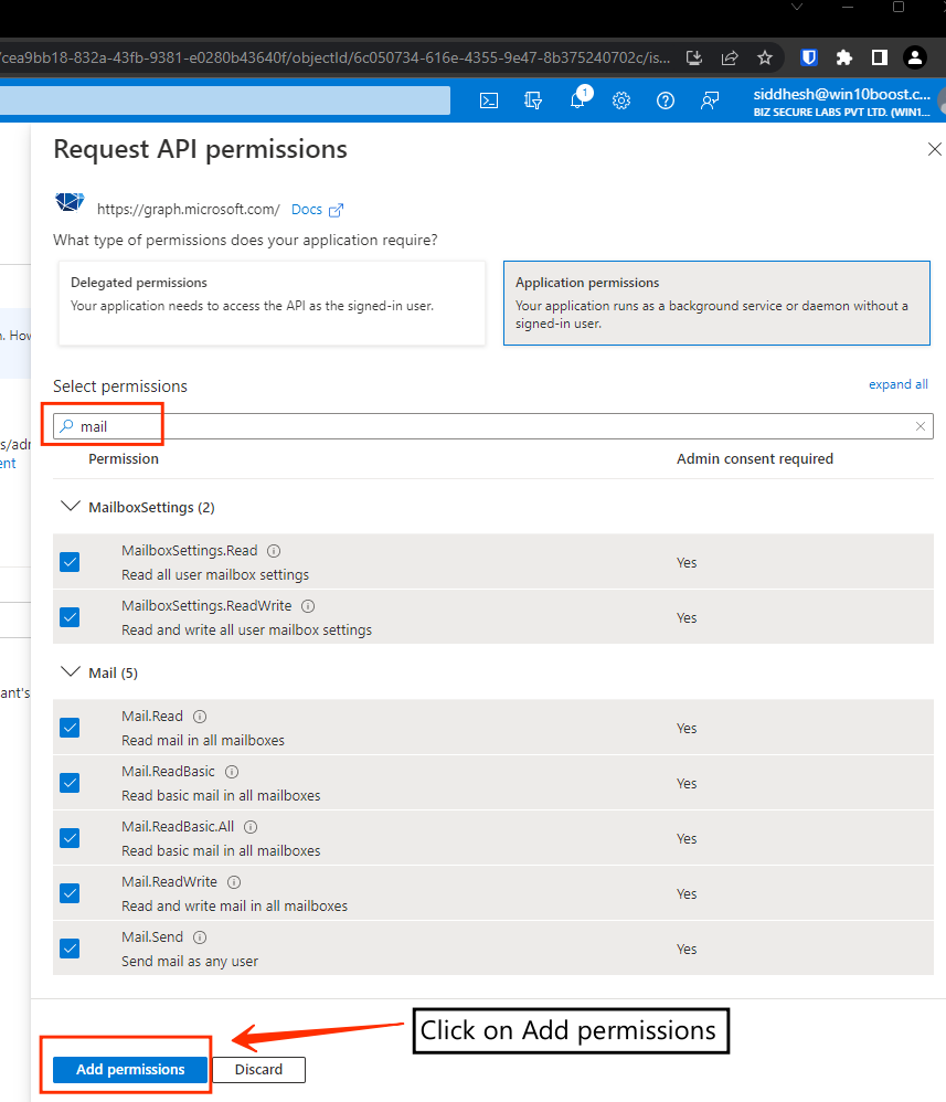 Step 8: Search ‘Mail’ and Tick for All Mailbox Settings