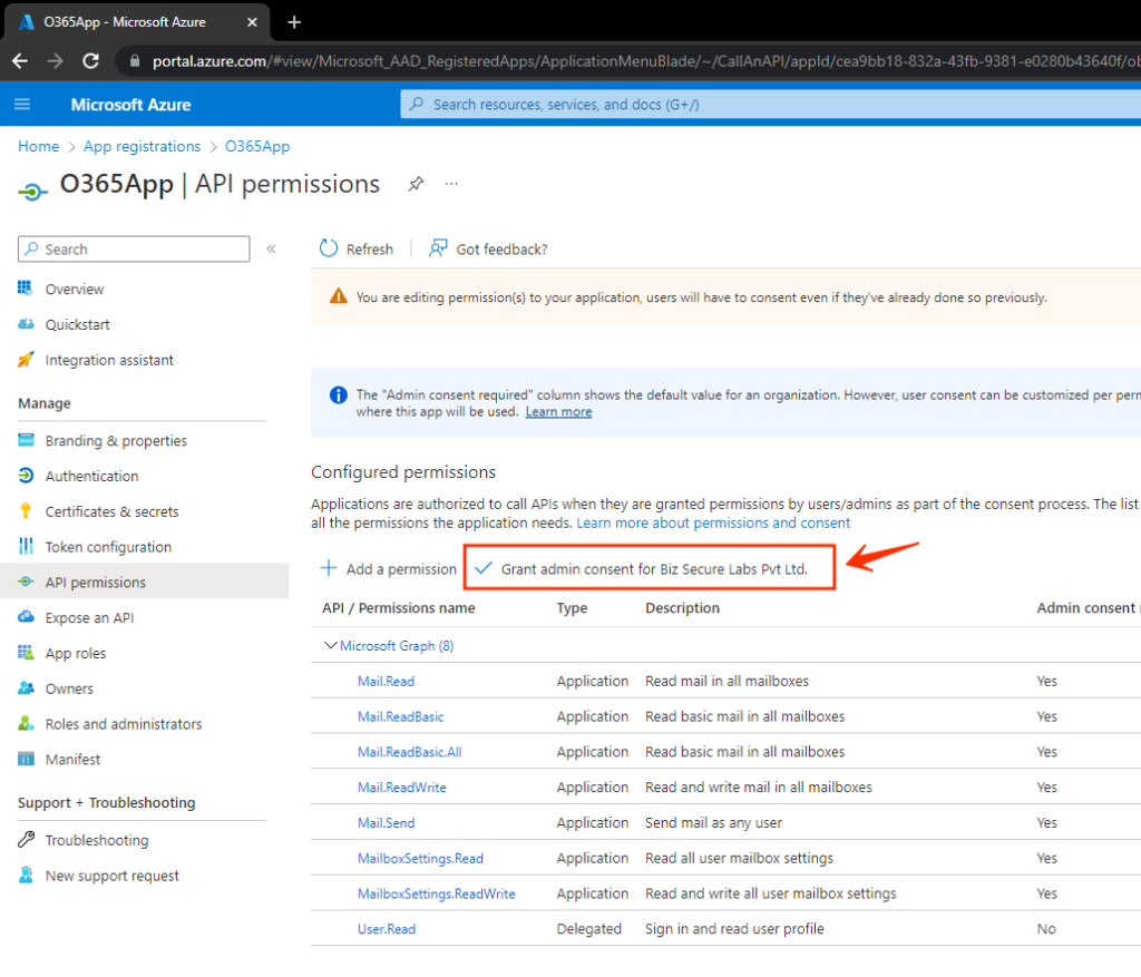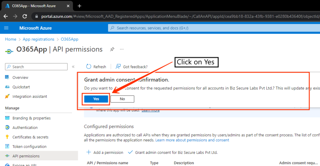 Step 11: Grant Admin Consent Confirmation Click on YES