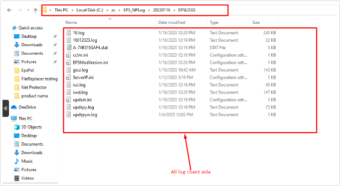 Step 4 : Successfully generated all log present in EPS_NPLOG.ini file, Client side path: C:\zv\EPS_NPLog\20230116\EPSLOGS