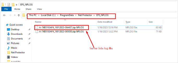 Step 5 : Same log file will be successfully sent to LAN server if connection is available, Server side Path: C:\ProgramData\Net Protector\EPS_NPLOG
