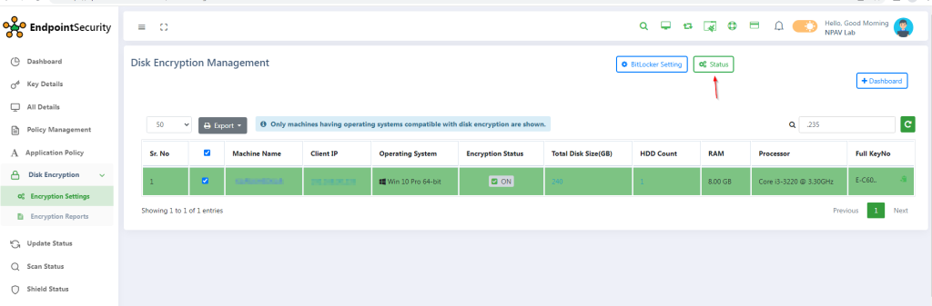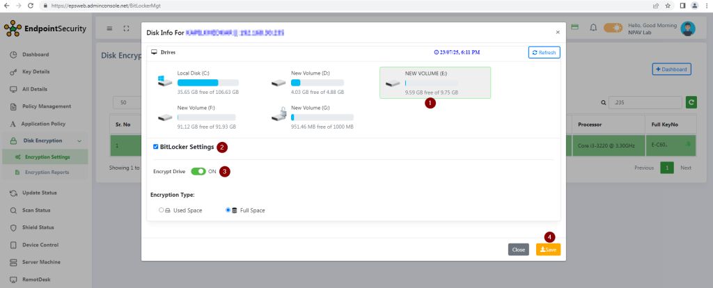 - Navigate to the Disk Encryption Menu