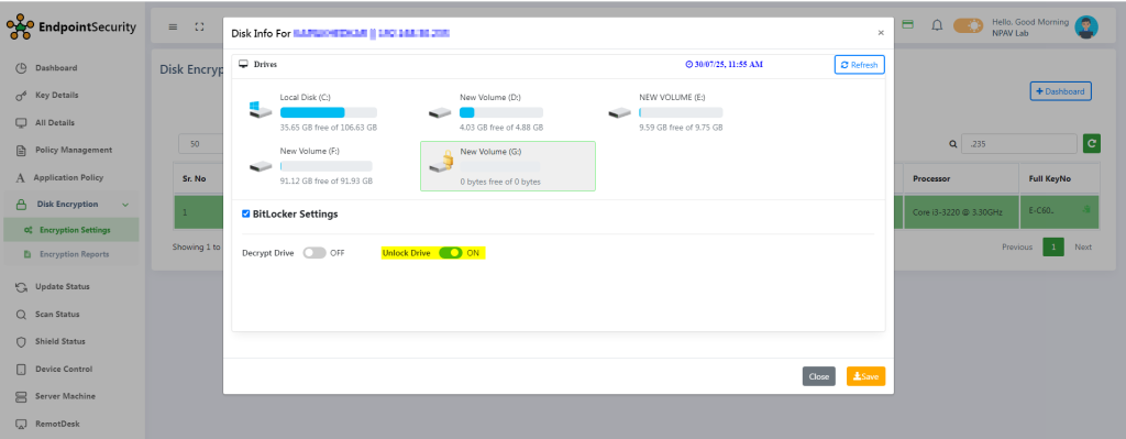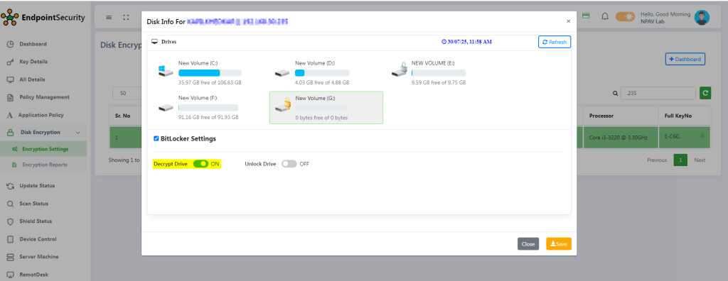 - Use the toggle switch to decrypt drive encryption. disbaling the toggle will initiate drive decryption
