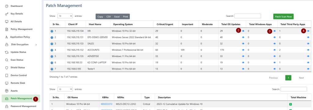 Step 3: Viewing Client Machine Update Details From the client machine list, select a specific client and click the “eye” icon next to OS Updates, Windows App Updates, or Third-Party App Updates to view detailed information.