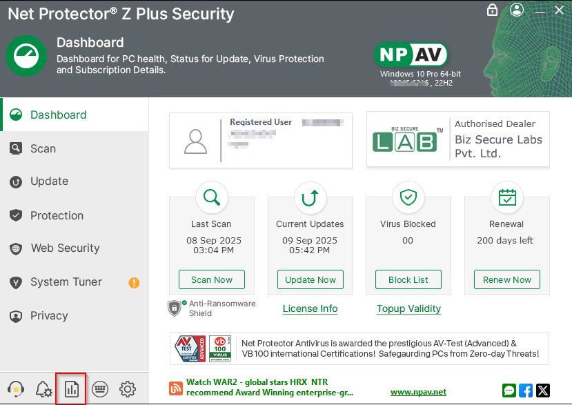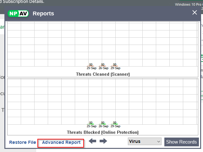 - Advance Reports :- In these window shows category wise virus detection .