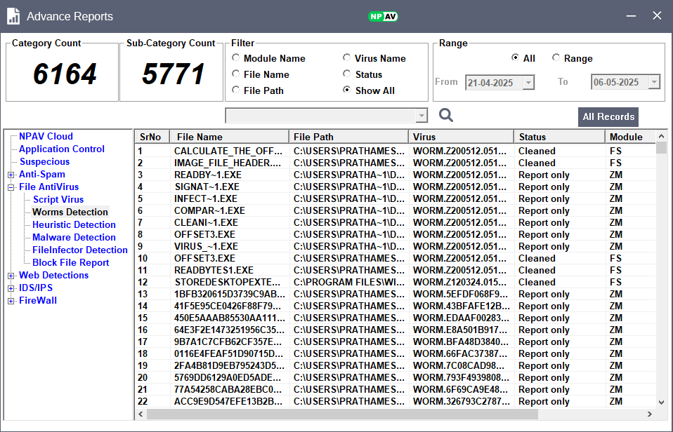 - This report is a snapshot of how NPAV has been actively monitoring and managing threats. It shows