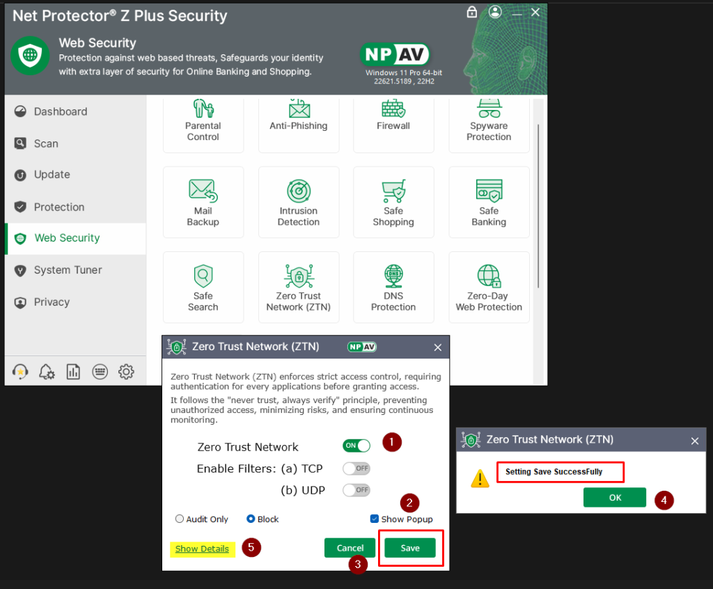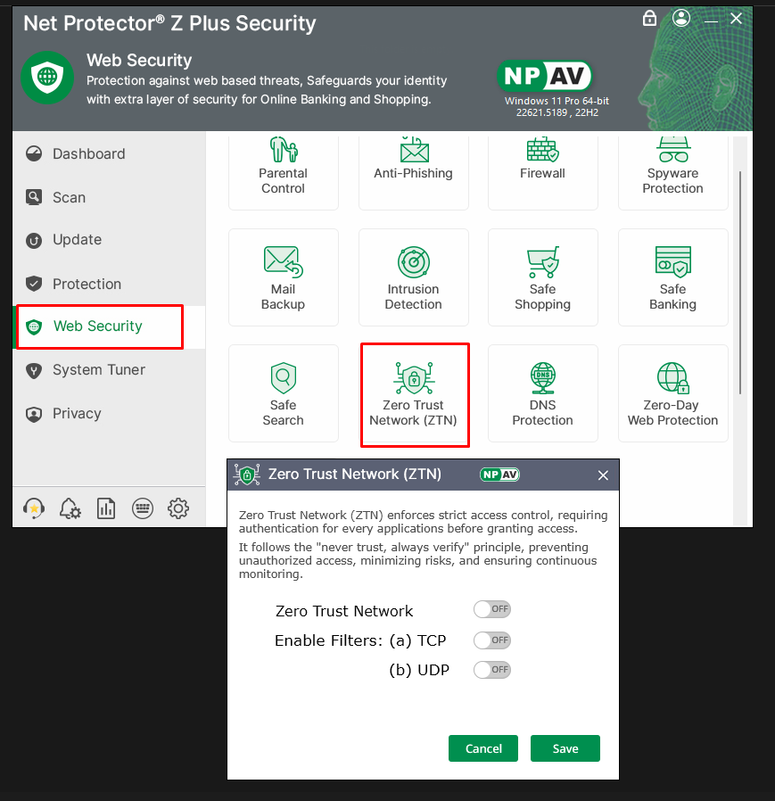 Step 3 : Click on “Zero Trust Network” within the Web Security tab.