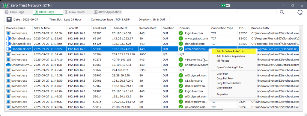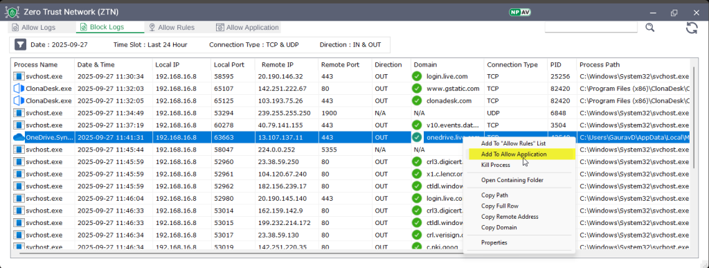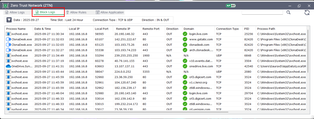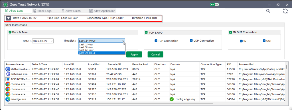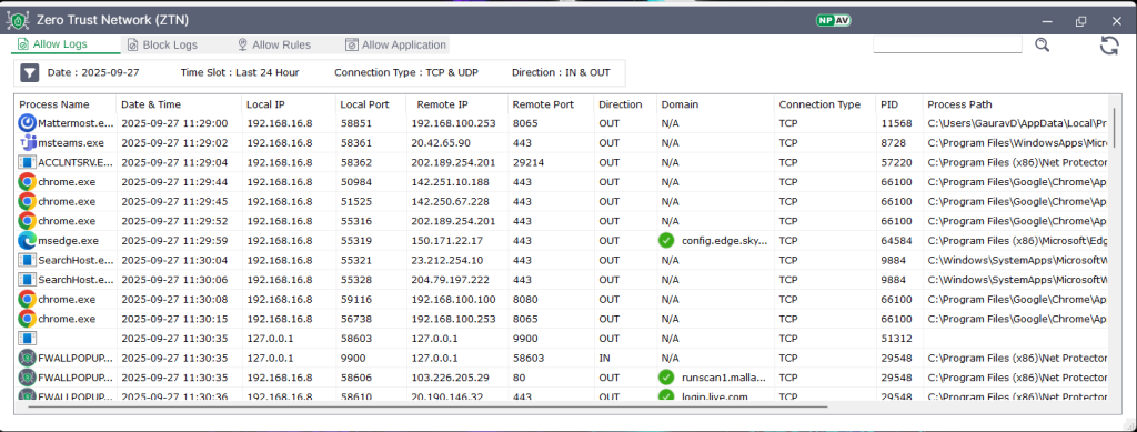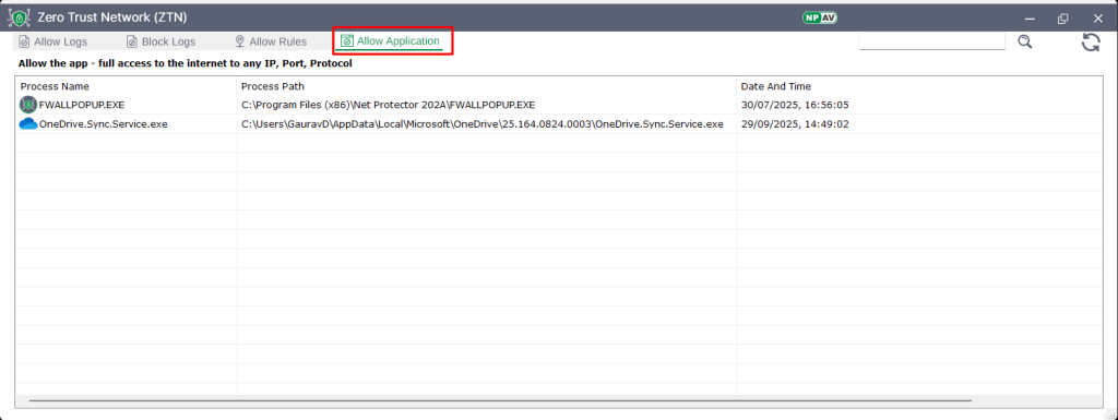 A.Allow Logs – Processes Which Get Allow & Work Without Any Restrction Are Appear In Allow Logs