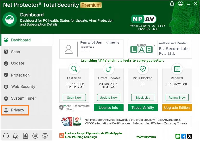 1) open the npav icon from desktop