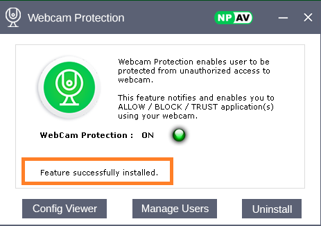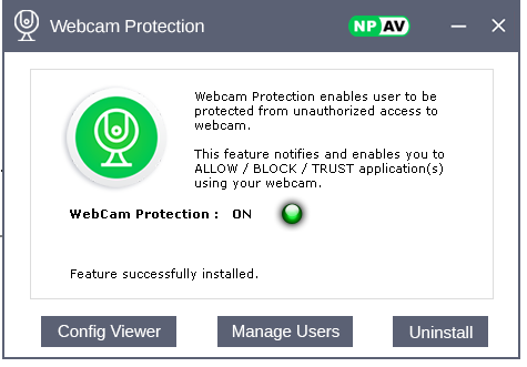 WebCam protection enables user to be protected from unauthorized access to webcam