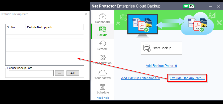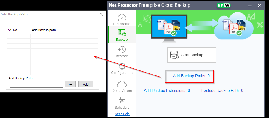 – Add backup paths from add bkp path hyperlink, add any drive , folder , file path will added into list.