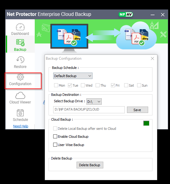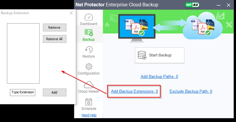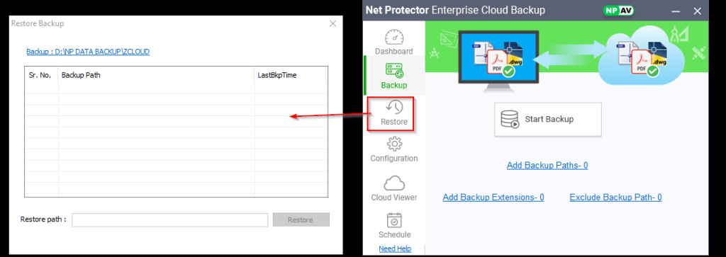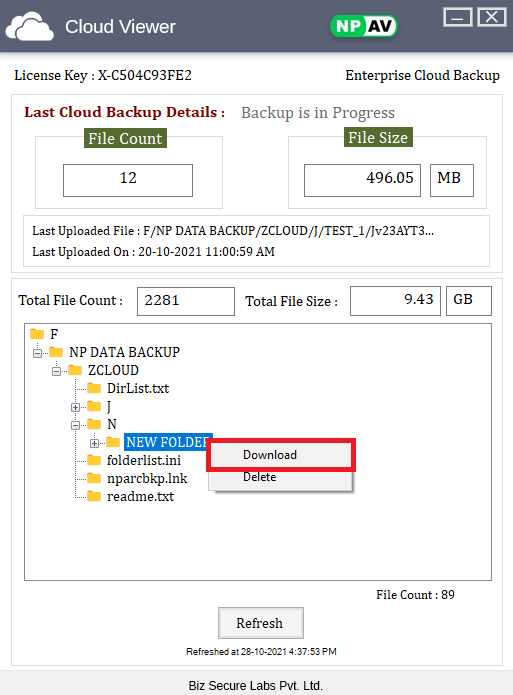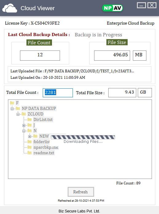 – NP Enterprise Cloud Backup viewer is useful for viewing the Statistics of files that are stored on Cloud