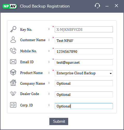 – Entered ur login credentials i.e. NPAV key , mobile no , 5 digit secure pin which u have sened via email after u purchased cloud bkp plan & registered