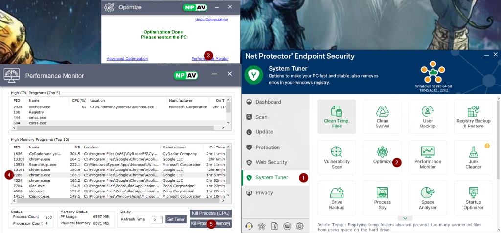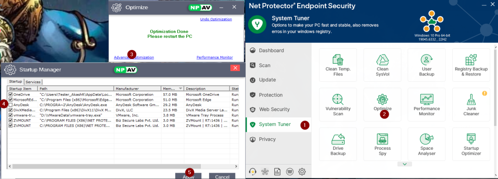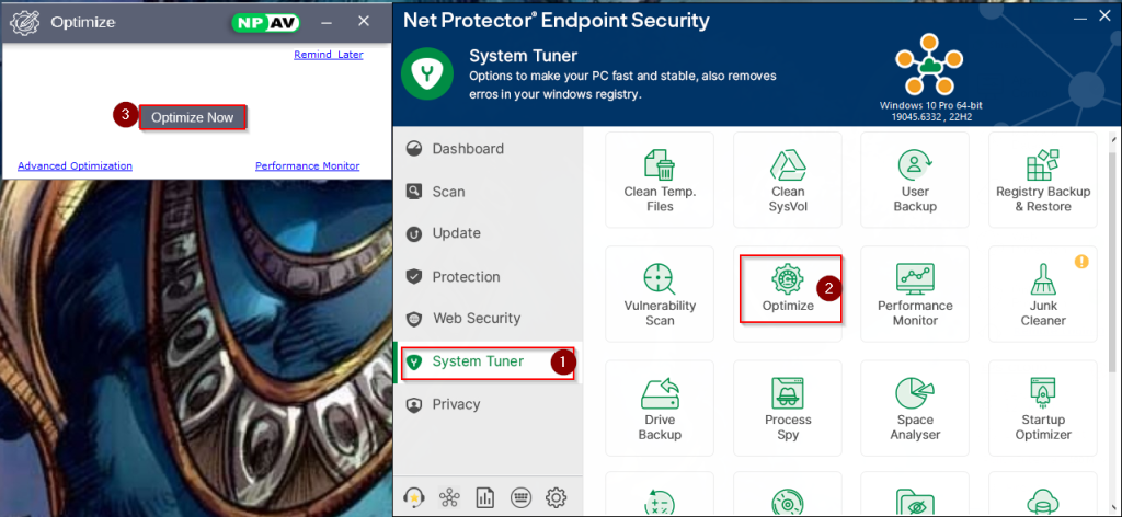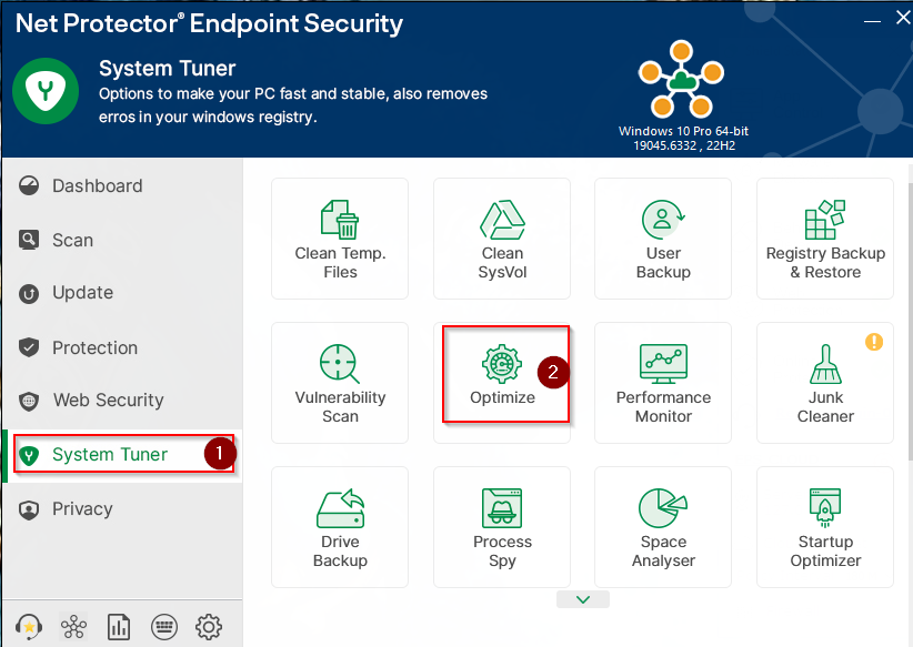 NetProtector’s ” Optimize” feature is designed to improve system startup time and overall performance. This feature helps the system boot faster by delaying background services and low-priority programs.