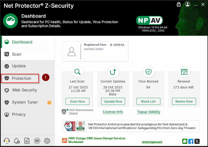 Step 1 : Open NPAV Dashboard and Navigate to “Protection Tab“.