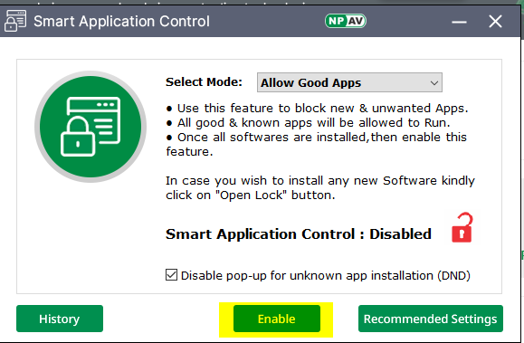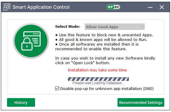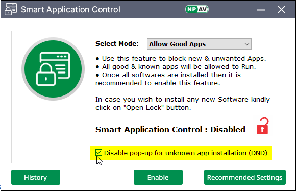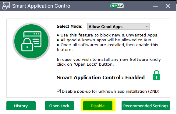 - This also has options to open lock for a specified amount of time, in which all the new softwares are allowed to run without any popups