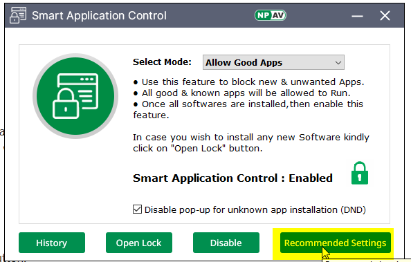 - To see the Blocked and Allowed exe Click on Recommended Settings button.