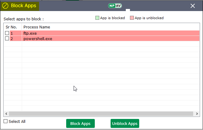 - Here we see the blocked apps in green colour and Unlocked exe in red colour.