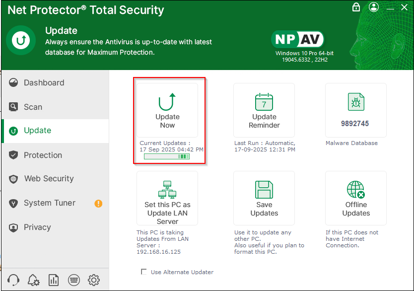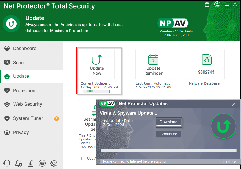 Net Protector ensures that its customers receive the latest and most secure database and product files by updating them—either automatically or manually—from both the web server and LAN server.