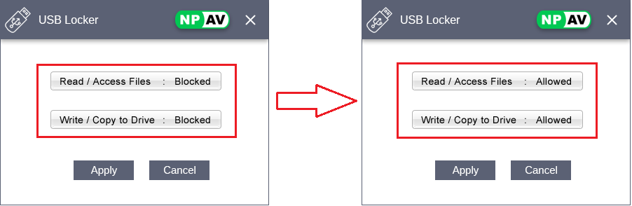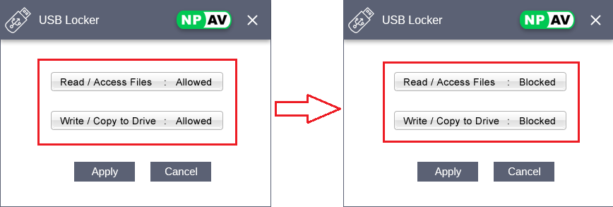 Now if you want to block USB drives access then click on buttons so that it toggles to “Blocked” as shown in the image.