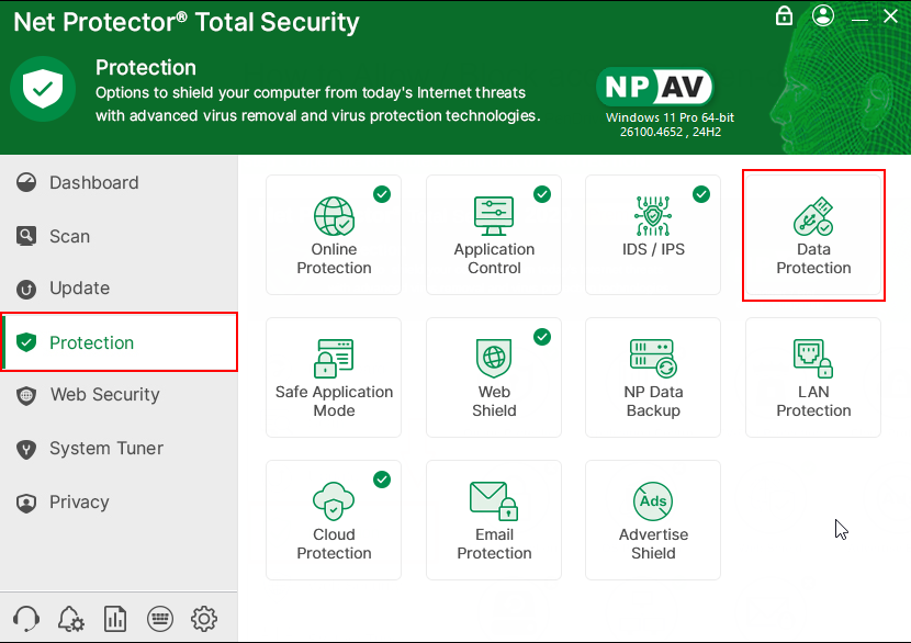 Step 1: Open the Net Protector and click on PROTECTION.