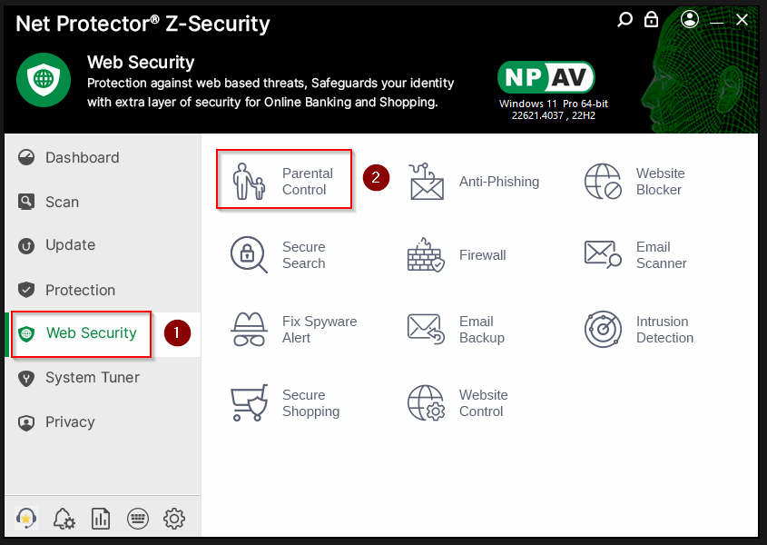 1.Open NPAV Dashboard , Goto Parental Control (Web Security Tab) & Login With Valid Credentials