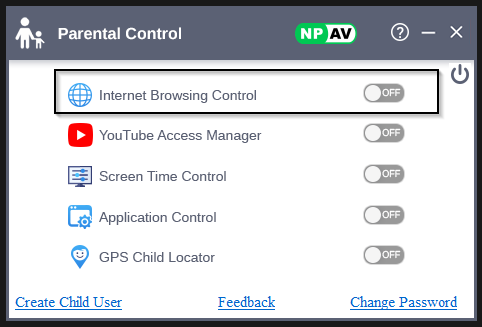 2.After Login To Parental Control Enable Internet Browsing Control Feature Toggle & Open That Feature
