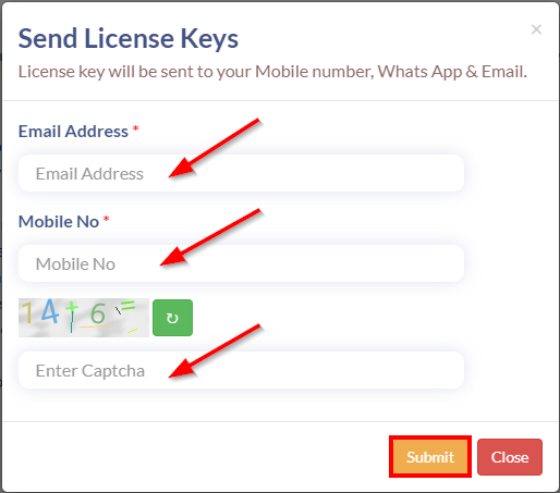> Once you’ve entered your details, your license key will be sent to your mobile number, WhatsApp, and email. Make sure to check all these channels for the key.