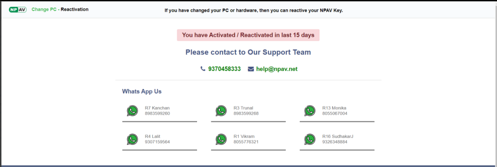 4.If Key Activated or Reactivated Within <15 days , It will show message
