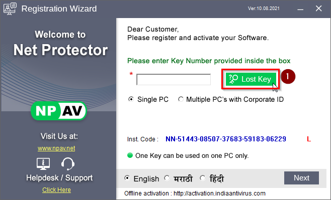 This feature can be used by customers who have lost their valid NPAV product key with remaining validity.