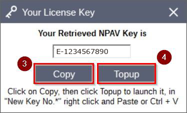 Enter license key on Registration Wizard window or Click on Top up window Button and Enter the fetched key