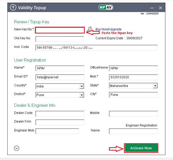 4.Right Click and Paste the key ,  Click on Activate Now Button