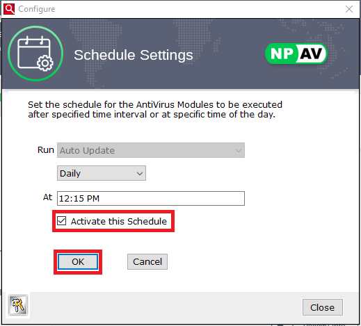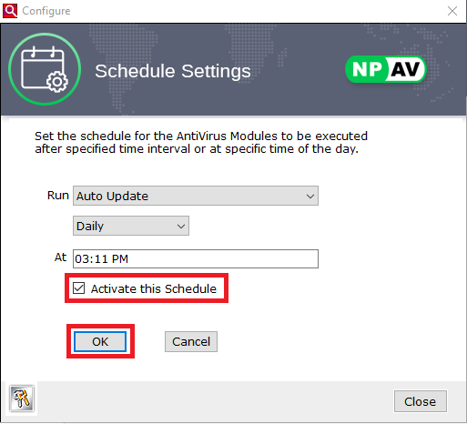 After these small steps, you can disable the Auto Update setting. If you want to enable the Auto Update do the same process only check the “Activate this Schedule”.