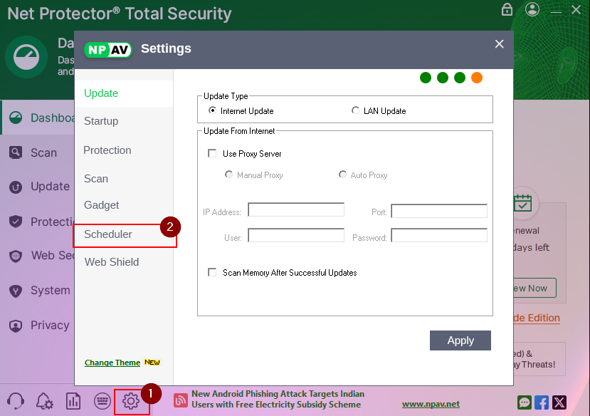 In NPAV (Net Protector Anti-Virus) it is always recommended to be up-to-date when it comes to cyber-security. For this, NPAV provides automatic update settings to the software whenever a new malware or virus is introduced & stays safe online. Also, if the user wants to update his system under his opinion or needs then he can do it manually.