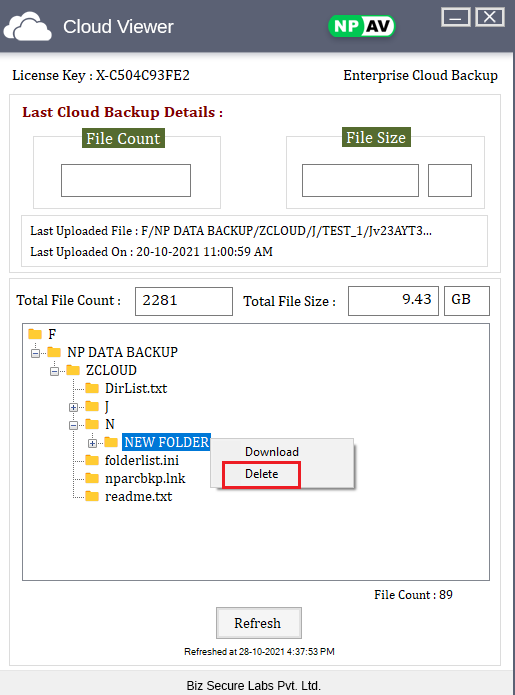 Step 19: Also We can delete the Cloud files from NPTBVIEWER.Exe