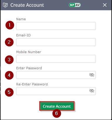 Provide your Name, valid Email ID, Mobile Number, and a strong Password.
