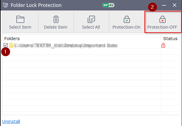 Select Folder and Click on Protection-OFF