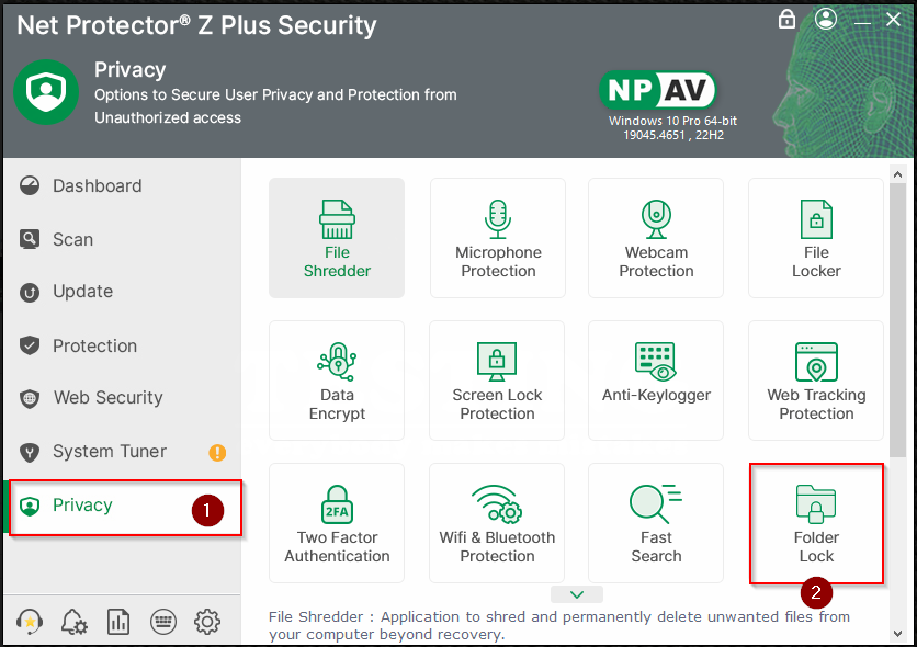 Step 1: Open NPAV Dashboard and go to Privacy tab >> Click on Folder Lock