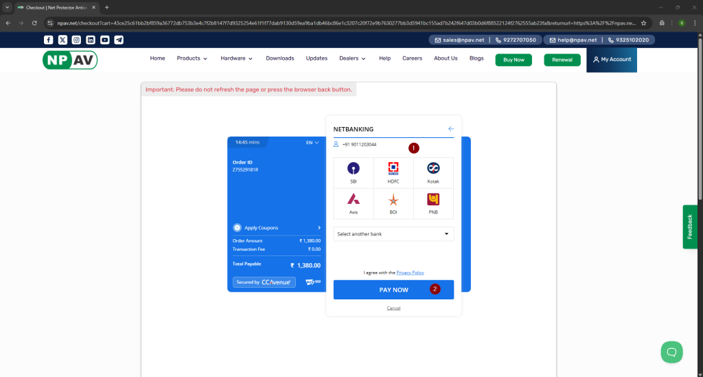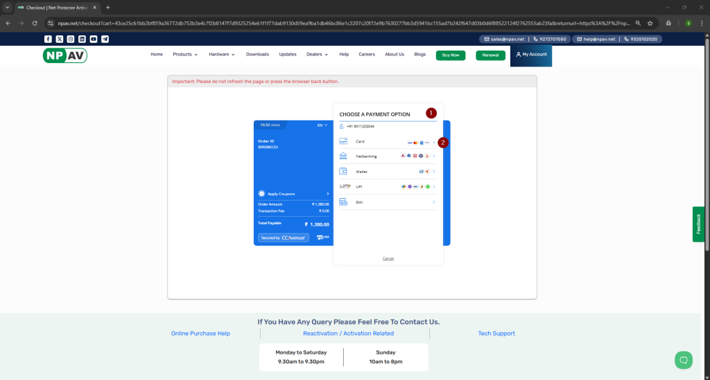 For Online Purchase Of Any Product Of Net Protector Antivirus Goto Website And Then Follow Below Steps –